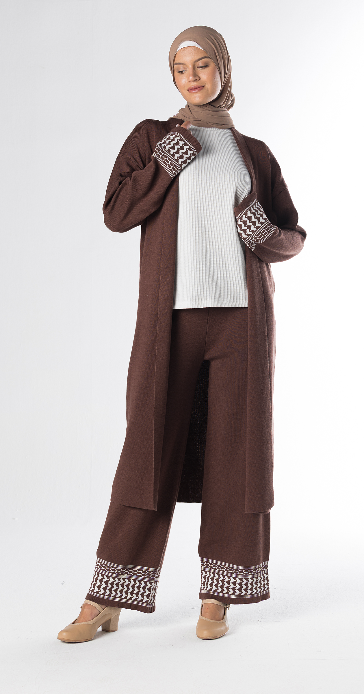 Brown Lazy Suit Long Cardigan + Wide-leg Pants/One Size