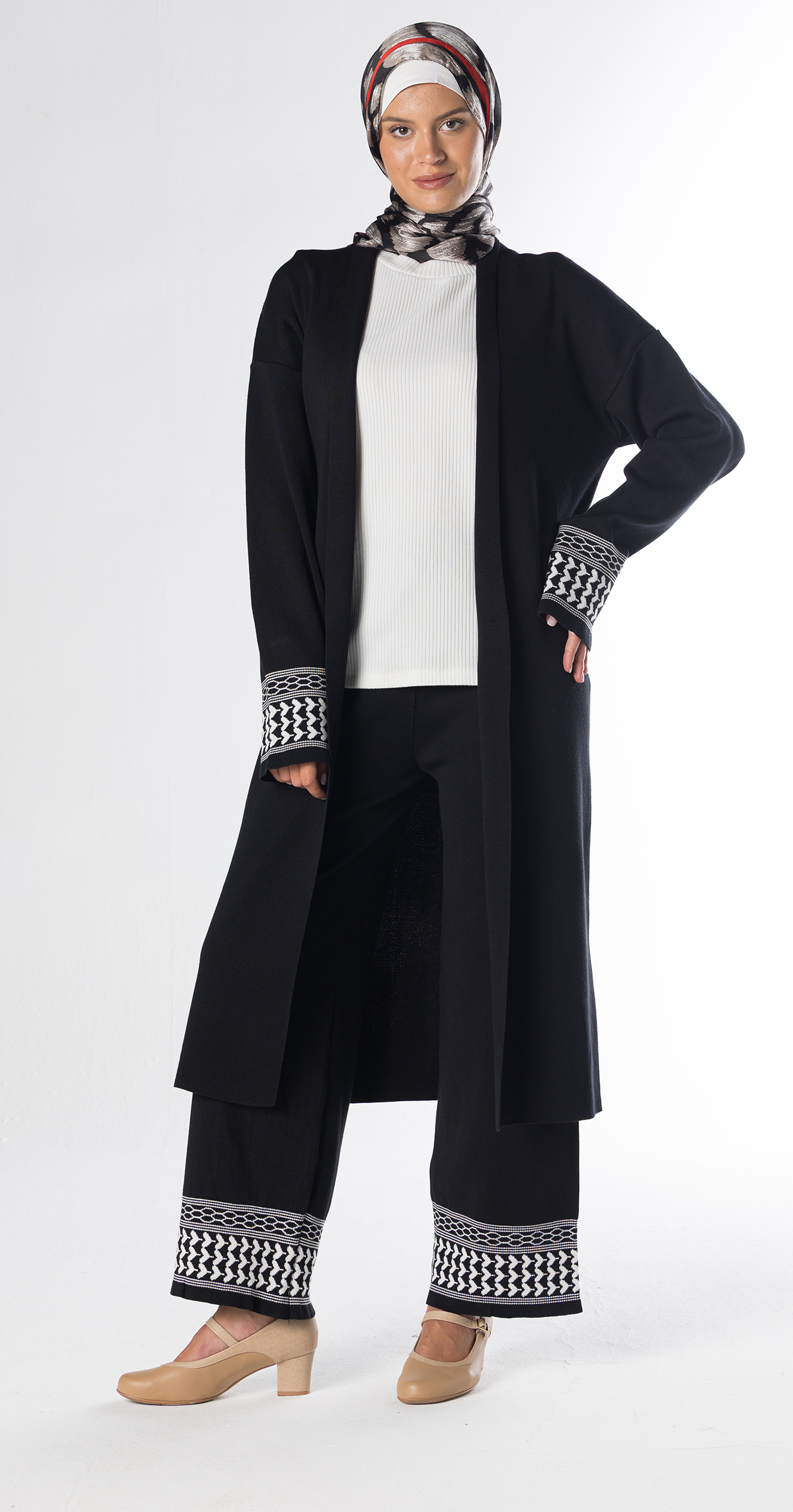 Black Lazy Suit Long Cardigan + Wide-leg Pants/One Size